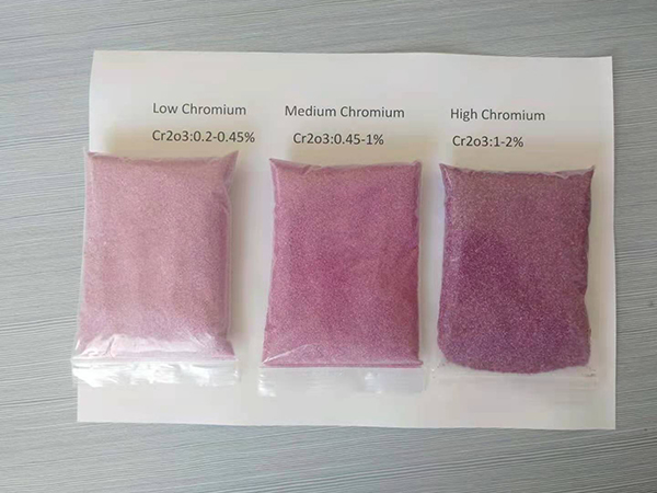1.铬刚玉呈粉红色、硬度高、韧性高、纯度高、自锐性优、磨削力强、发热量小、效率高、耐酸碱腐蚀、耐高温、热稳定性好等特点。